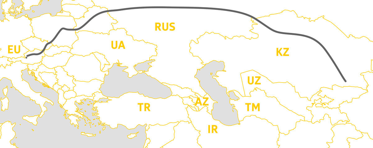 Diese Route war traditionell die wichtigste Verbindung für europäische Exporteure. Durch die aktuellen politischen Entwicklungen ist sie allerdings mit großen Risiken behaftet: